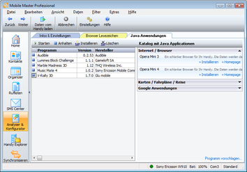 With Mobile Master you can install an Java application with just one click.